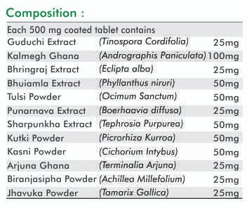 Main Ingredients :Kalmegh, Bhuiamla, Bhringraj, Tulsi, Sharpunkha, Punarnava, Guduchi