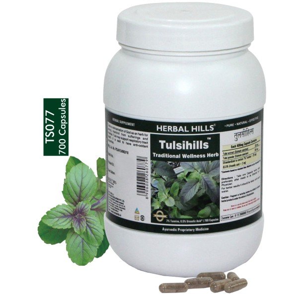 - Each capsule contains 200 mg Tulsi Powder and 200 mg of extract (as dry extract) from Tulsi Leaves (Ocimum sanctum) (7:1) (equivalent to 1750 mg of Tulsi Leaves). When assayed these capsules contain Tannin NLT 7%, Ursolic Acid NLT 0.5%.
